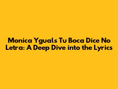 Hey music lovers! Today, we're diving deep into the mesmerizing world of Monica Ygual's song, "Tu Boca Dice No Letra." This track is more than just a catchy tune; it's a journey through emotions, a story told through the delicate dance of words and music. We'll be breaking down the lyrics, exploring the themes, and uncovering the heart of what makes this song so special. So, grab your headphones, get comfy, and let's get started!
