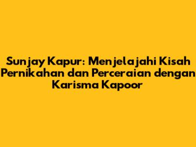 Kisah Sunjay Kapur dan Karisma Kapoor adalah kisah yang penuh warna, dari awal pertemuan yang romantis, pernikahan mewah, hingga perceraian yang penuh drama. Kehidupan mereka setelah perceraian juga menarik untuk diikuti. Sunjay Kapur berhasil bangkit kembali dan membangun kembali kehidupannya. Ia sukses dalam karir dan bisnis, serta menemukan kebahagiaan dalam pernikahan barunya. Hubungannya dengan anak-anaknya juga tetap baik, menunjukkan kedewasaan dan tanggung jawabnya. Kisah hidupnya adalah bukti bahwa seseorang bisa mengatasi berbagai tantangan dan mencapai kebahagiaan.