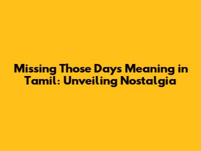 Hey guys! Ever felt a pang of longing for the past, a yearning for simpler times? You're not alone! This feeling, this bittersweet emotion, is beautifully captured by the phrase "Missing Those Days." But what exactly does this sentiment mean, especially when we translate it into the rich and expressive language of Tamil? Let's dive in and explore the depths of nostalgia, its connection to the Tamil language, and how it shapes our memories. We'll look at some awesome examples to help you understand the concept even better. This article explores the nuanced meaning of "Missing Those Days" in Tamil, providing real-life examples and cultural context to help you grasp this universally relatable emotion. Get ready to reminisce, guys!