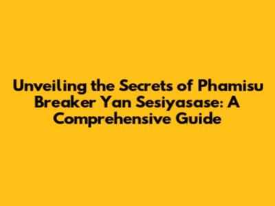 Mastering Phamisu Breaker Yan Sesiyasase: Practical Tips and Strategies